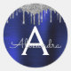 Silver Navy Blue Glitter Sparkle Monogram Name Classic Round Sticker