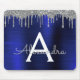 Silver Navy Blue Glitter Sparkle Monogram Name Mouse Pad