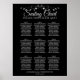 Make your wedding reception beautiful with this 9 table seating chart. Designed as a part of our Silver Foil Elegant Wedding Suite, it features a simple yet elegant design with pale silver gray text on a black background with a silver faux foil floral border. This chart shows table assignments for 90 guests.