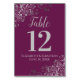 Silver on Cassis Purple Elegant Frilly Wedding Table Number