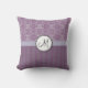 Silver on Lavender Damask with Stripes & Monogram Throw Pillow