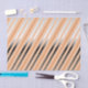 Holiday tissue paper with a diagonal stripe design of silver, peach, and coral.