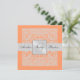 Silver & Peach Monogram Damask Border Invitation