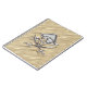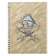 A silver chrome like nautical pirate skull applique on a sandy beach decor. An original gift sure to make an impression on, or off the boat.