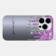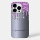 An elegant, girly and glam case. Faux silver and purple faux glitter drip, paint dripping look. Chic dark faux silver metal looking background. Personalize and add your name. The name is written with a modern hand lettered style script. Black letters. To keep the swashes only delete the sample name, leave the spaces or emoji's in front and after the name