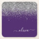 Silver Purple Glitter Girly Monogram Name Square Paper Coaster
