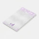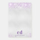 A faux silver metallic looking background. Decorated with purple faux glitter dust. Personalize and add your name and monogram initials. Purple coloured letters.