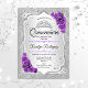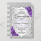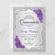 Quinceanera Party - Silver Invitation. Features stripes, script font, purple roses, tiara and confetti. Classy design with faux glitter silver foil. Perfect for an elegant glam celebration.