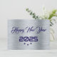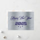 Greeting wish card Happy New Year written in English in purple font with 3 stars on a silver background - editable text and background