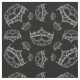 It is silver crowns / tiaras on black background, with heart shape diamonds and pearls inside.
