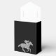 Tent style party favour boxes feature a racehorse in faux silver glitter on black and black and white stripes at the top. Change the background colours to anything! Great for Derby party, Derby bridal shower, birthday party, retirement party and more. MATCHING items in our collection.