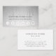 Chic loyalty cards for makeup artists, aestheticians, hairstylists, salons or spas feature classic black lettering on a pale grey ombre background adorned with strands of faux silver foil string lights. Add your business name and customer loyalty offer beneath with six punchout circles, and personalize the back with your contact details.