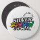 A large button with the silver rainbow social group logo on it