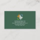 Overleaf, in a dark green cover, the logo is at the top followed by the business name, contact details and a slogan option.