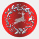 Silver Reindeer and Wreath Red Christmas Classic Round Sticker