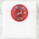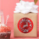 A very elegant red Christmas sticker with a sparkling silver reindeer leaping across a metallic red background, inside a silver Christmas wreath. This gorgeous red and silver sticker will add a stylish and luxe touch to your Christmas decorations this year for sure.