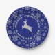 Silver Reindeer Blue Snowflake Paper Plate