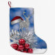 Silver Reindeer Santa Hat Blue Bokeh Small Christmas Stocking