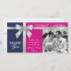 © 2013 Socialite Designs. Elegant wedding thank you photo card with silver ribbon dark purple with fuchsia background. Do you have a colour combination you would like on this thank you photo card? Send Socialite Designs a message to let us know and we will create them for you.