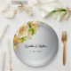 These exquisite dinnerware paper plates for the wedding reception feature a stunning blend of silver and gold hues with delicate golden roses, making it an ideal choice for any formal occasion such as weddings, anniversaries, birthday parties and more. The delicate floral motifs in shades of yellow, white, and green set against the luxurious silver backdrop create an eye-catching contrast that is sure to impress your guests. Our Silver Romance Golden Roses Wedding paper plates are also practical as they can be disposed of without having to clean up, so you can enjoy your special day with minimal hassle. We're confident that our gorgeous silver paper plates will elevate your tabletop decor and add a touch of sophistication to your event.