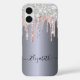 An elegant, girly and glam case. Faux silver and rose gold, pink drips. Chic dark faux silver looking background. Personalize and add your name. The name is written with a modern hand lettered style script. Dark grey coloured letters. To keep the swashes only delete the sample name, leave the spaces or emoji's in front and after the name