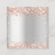 A faux silver looking background, black text. Decorated with rose gold faux glitter.