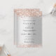 A modern, formal wedding invitation. A faux silver looking background. Decorated with rose gold faux sparkles, confetti. Personalize and add your names and party details.