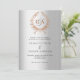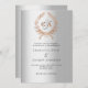A faux silver looking background. A rose gold wreath. Personalize and add your monogram initials, names, and details.