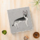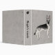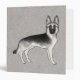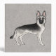 Destei's original cartoon illustration of a silver sable / black and silver colour German Shepherd breed dog. The background colour is greige with a decorative texture. The texture can be removed and the background colour can be changed to any other colour, if so wished. There is also a personalizable text area on the spine together with a black paw print silhouette.