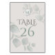 Wedding Table Number Card | Monogram Geometric Botanical Wedding - Watercolor silver dollar transparent eucalyptus leaves in sage green with a modern decor geometric silver box at a 45 degree angle holding a square off white notice for the monogram frame - - all set on a warm latte beige background. Another Bridal design created by © WhimsicalArtwork™ A Playful approach of typography in the text - with Bride and Groom first name initials surrounded by a geometric square- in two colours (sage and silver) - followed by coordinating modern fonts.