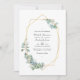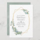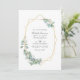 Forest eucalyptus greenery wedding photo invitation with gold geometric frame and silver sage watercolor reverse customizable to your event specifics. Ideal for any given theme or garden wedding. The QR code on the reverse directs to your wedding site where people can learn more and rsvp.