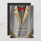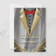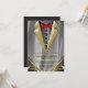 The splendour of silver satin background texture added with a with a golden tuxedo makes for a great bachelor card