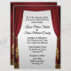 Dark red movie theatre or stage curtains design for your wedding invitations. The name of the bride and groom on front is like the names of the starring actors of the event announced.