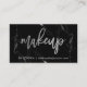 This stylish, modern business card for the makeup artist features an elegant black marble look background, with trendy faux silver typography.