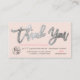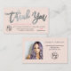 A faux silver foil outline logo business order thank you with a brushed script typography , add your business photo . Add your social media. With an elegant signature script font, all the colours are editable on blush pink, add your logo.