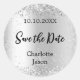 Silver script wedding Save the Date Classic Round Sticker