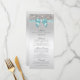 Elegant custom teal and silver wedding menu with a beautiful glittery silver printed image sequins jewels, gems pattern, cute, sophisticated shiny teal blue printed bow and ribbon and pretty digital diamond bling jewel with grey text on a silver gradient background. If you need any assistance customizing your product please contact me through my store and I will be happy to help. PLEASE NOTE: These are flat printed graphics - not real bows, jewels or sequins. I have matching products in my store.
