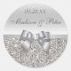 Personalized elegant custom silver wedding stickers, for favours or envelope seals, with a beautiful printed silver sequins pattern, a cute shiny silver printed bow and ribbon and pretty printed diamond bling jewel. Text, font and colour of font can all be customized. If you need assistance customizing your product please contact me through my store. I will be happy to help. I have matching products in my store.