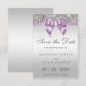 Elegant custom silver and lilac wedding Save the Date cards with a beautiful printed silver sequins pattern, a cute shiny lilac printed bow and ribbon and pretty printed diamond bling jewel. Beautiful, chic, trendy, modern invitations. PLEASE NOTE: These are flat printed graphics - no real bows, sequins or raised parts. Text, font and colour of font can all be customized. If you need assistance customizing your product please contact me through my store. I will be happy to help. I have matching products in my store.
