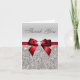 Silver Sequins Red Diamond Bow Thank You Card