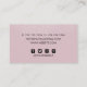 Silver shimmer glitter dust adds subtle glam to the pink background. Your contact details, including phone, email, website and social media handle are on the reverse side. Click the 'Pesonalize' button to add your details. You can customize further by clicking on the 'Click to customize further' link at the bottom of the Personalize box and use the design tool to remove icons for social media that you do not use, and reposition icons if necessary.