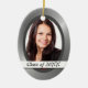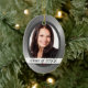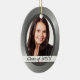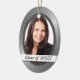 One side of this keepsake ornament features your graduate's photograph framed in an attractive steel grey metallic looking background, which is complementary to most portraits. A white banner at the bottom holds your easily customized text. The other side is matching silver grey. If you'd like to add text, you may do so by choosing "Customize it". **Please note -- the image is printed on the surface, and the product contains no actual metal or metallic substance.**