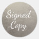 Create your own "signed copy" stickers against a printed silver metallic foil photo effect. Customize the font style, colour and size. Try black text rather than the white.