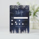 Time to celebrate your winter wonderland wedding theme with this luxury silver glitter snowflakes sparkles and silver glitter pine tree forest on an elegant festive navy blue watercolor background, featuring a modern cool script font typography. Perfect rsvp card for your winter wonderland wedding.
