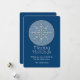 Stylish flat style Christmas greeting card done in a federal blue background graphics of a silver tone snowflake set in a silver glittery circle. Silver tone graphic text reads Happy Holidays. White custom text, on the bottom, is ready to personalize to suit your company needs.