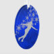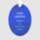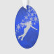 This Christmas ornament features a silver silhouette female ice skater in front of a spray of silver snowflakes. The image is placed on a bright blue abstract background. The back of the ornament has the same blue background with text fields for you to customize. Perfect for the ice skater or ice skating fan, and also makes a great keepsake for a child from parents or grandparents.