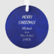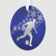 For the soccer star in your life, this Christmas ornament features a silver silhouette soccer player in front of a spray of silver snowflakes. The image is placed on a royal blue abstract background. The back of the ornament has the same blue background with text fields for you to customize. Perfect for the soccer player or fan, and also makes a great keepsake for a child from parents or grandparents.