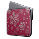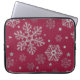 Silver snowflakes on dark red laptop sleeve