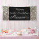 Faux glitter-effect silver elegant personalized 40th birthday party banner wall decoration. Beautiful and festive 40th birthday banner custom printed with the guest of honour women's name! Black and silver twinkling photographic image of sparkles to celebrate the guest of honour's big 40th day.