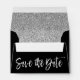 Faux Sparkle and Glitter Silver, Black and White Save the Date Script Envelopes are perfect for a modern and elegant Save the Date Wedding Card Invitation.